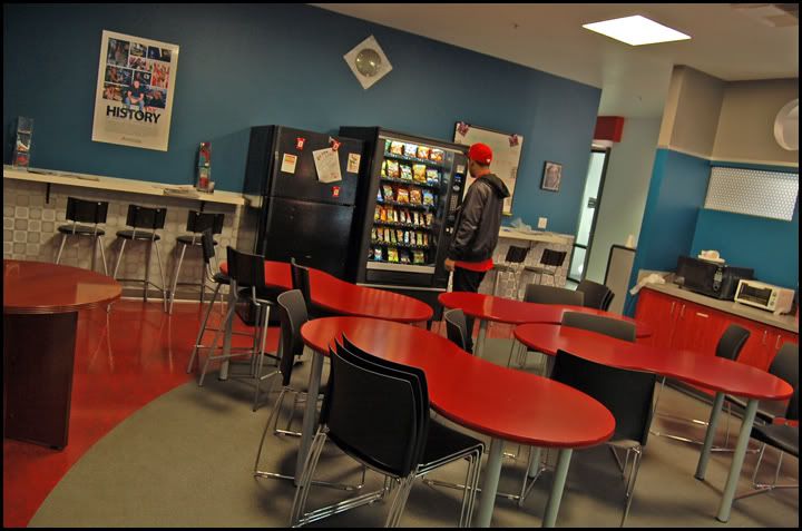 Cafeteria, with a game room. School is pretty sick once you take a look at all the furniture thats in it. Very futurisitc like Ikea.